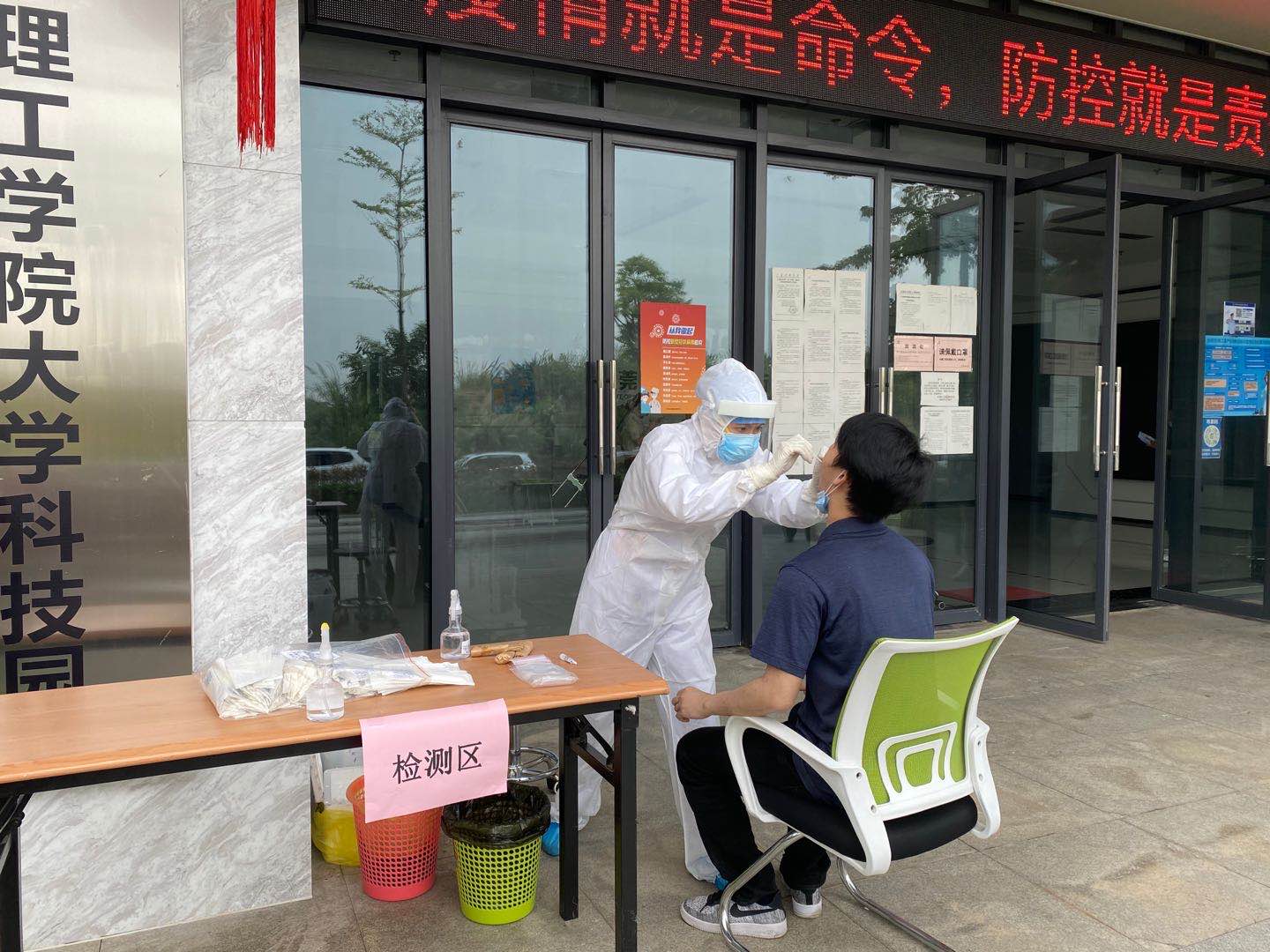 为坚决防止发生输入性疫情和聚集性疫情, 研究院于2020年5月13日统一组织在岗职工接受核酸检测。本次检测由东华医院委派医护人员在大学创新城D2栋一楼实施。