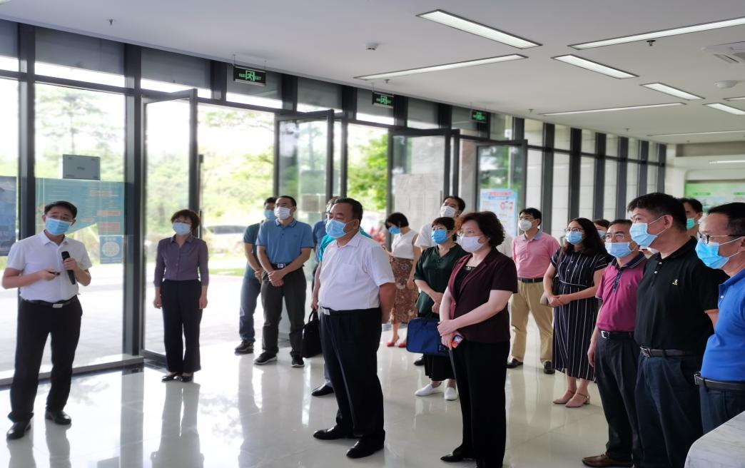 科技创新研究院常务副院长周梓荣为检查组介绍平台成果转化情况