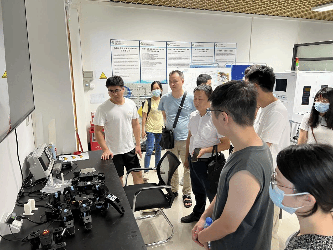 ,让来宾们初步了解了研究院的发展历程及各个平台的建设情况。杨老师带领来宾们先后参观了西门子智能制造创新中心、智能制造创新中心、3D打印与智能制造研究中心、先进探测技术实验室、食品营养健康工程与智能化加工研究中心、广东省城市生命线工程智慧防灾与应急技术重点实验室参观等创新平台。