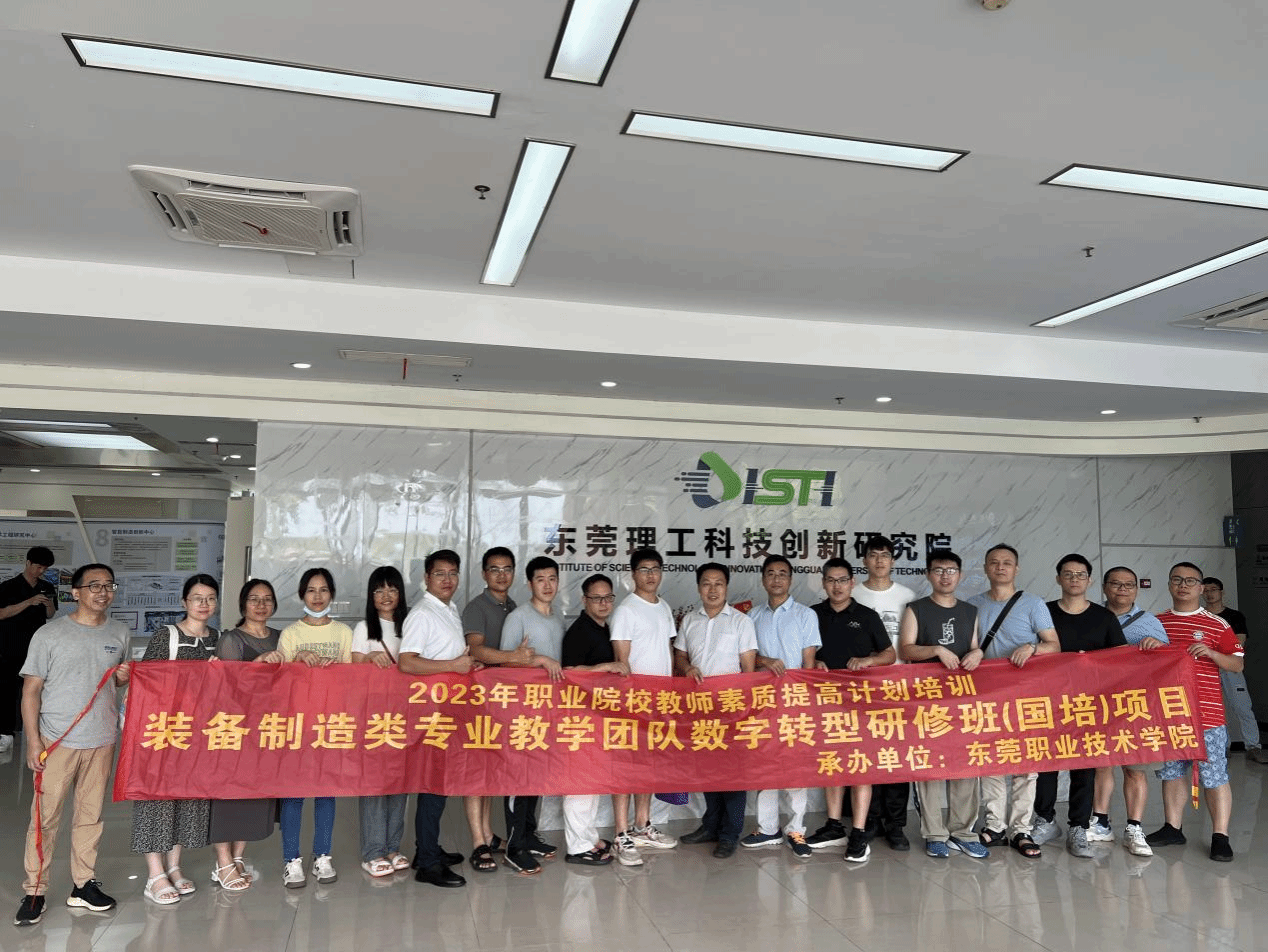 2023年7月14日,东莞职业技术学院承办的装备制造类专业教学团队数字化转型研修班学员一行28人,前来我院开展装备制造类成果参观活动。