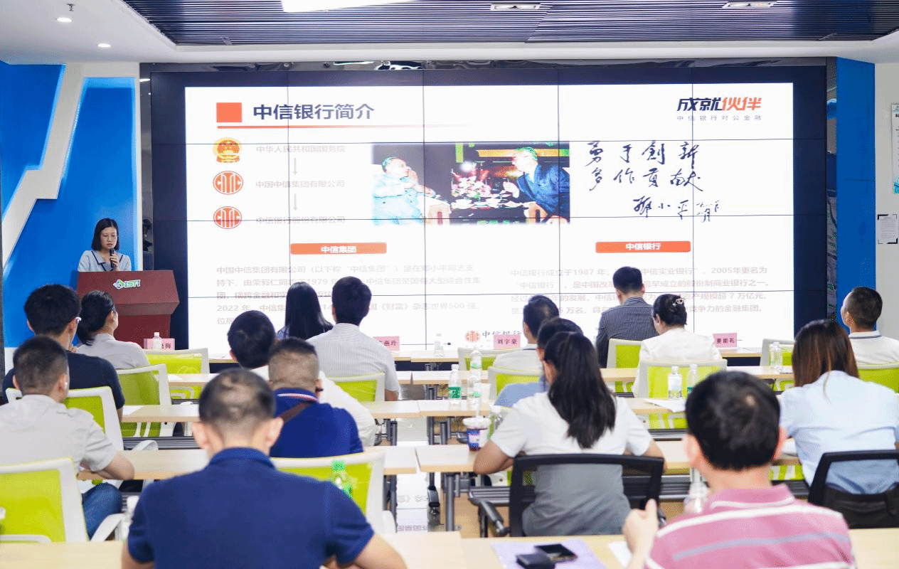 随后,活动支持单位中信银行的东莞分行普惠金融部总经理卢晓梅介绍了中信银行综合金融服务方案,以及科创院科创部的同事介绍了东莞市科研仪器设备开放共享政策和科创院部分重点仪器设备简介。