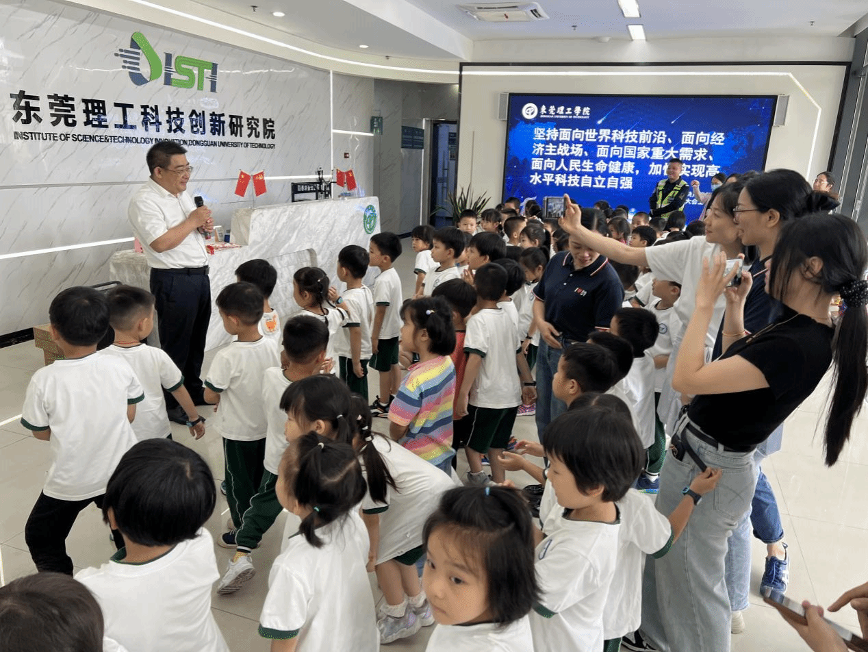 为了加深孩子们对科学前沿的了解,开阔孩子们的视野,2024年4月16日上午,东莞理工附属幼儿园的孩子们在老师的带领下,兴致勃勃地来到我院开展科普启蒙的参观学习。