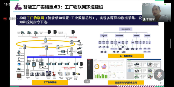 在尹玲博士的介绍下,李朝晖副主任上线宣告讲座的正式开始。本次讲座基于数字孪生理念及5G信息技术发展,阐述数字孪生与现代智能工厂的融合方法,整合数字孪生与智能工厂融合后的系统组成和它所具备的特点.并结合实际案例分析。