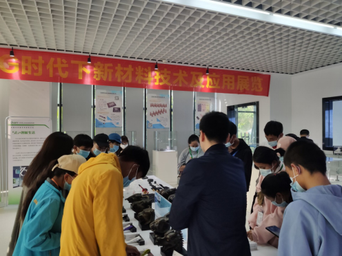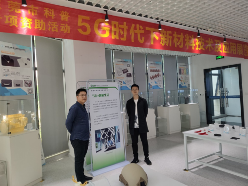 在松山湖国际创新创业社区D栋举办了“5G时代下新材料技术及应用展览”科普展,特邀请了东莞理工学院材料学院的王康博士、易爱华博士、陈肯博士与参观群众一起探讨5G下新材料的发展前景。