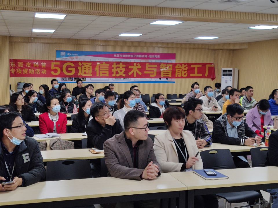 在东莞市德普特电子有限公司举办了“5G通信技术与智能工厂”科普讲座活动,来自东莞理工学院的沈飞教授和周清峰教授为该公司的员工进行了相关讲解。