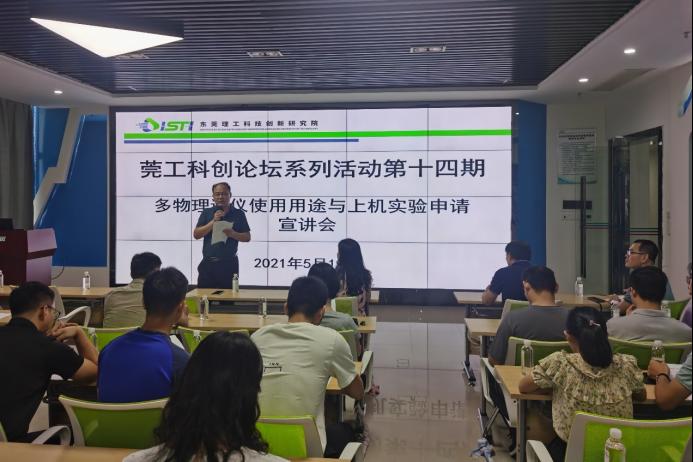 为充分利用好由我校与中国散裂中子源、香港城市大学合作共建的多物理谱仪的上机实验机时,提升上机实验申请需求的质量,2021年5月19日,科技创新研究院在松山湖国际创新创业社区D2栋学术交流厅举办了第十四期“莞工科创论坛”系列活动暨多物理谱仪使用用途与上机实验申请宣讲会,活动邀请了中科院高能物理所中子科学中心副主任殷雯研究员作为主讲嘉宾,吸引了校内多个机构的70余位科研人员参加,科技创新研究院院长周梓荣主持了本次活动。