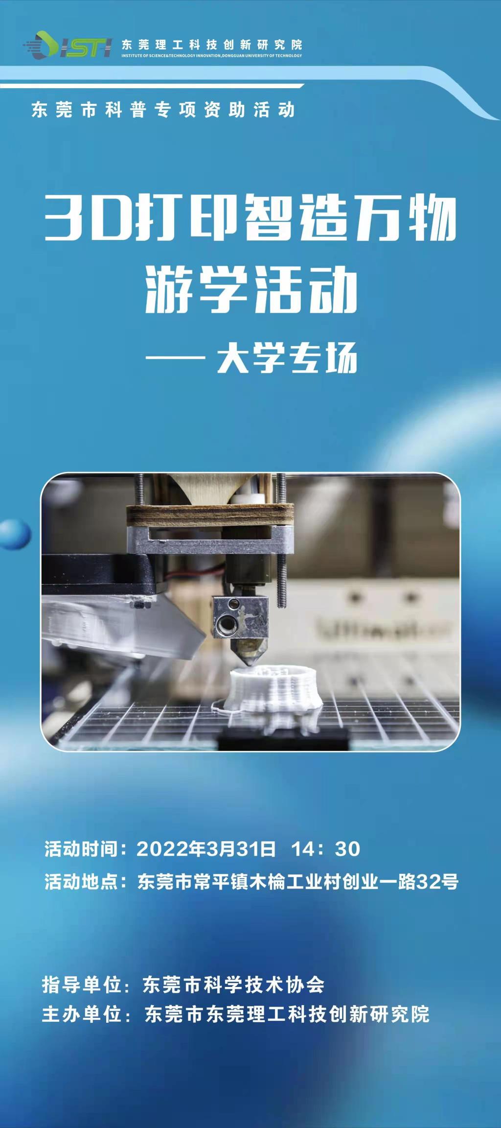 科普预告│3D打印智造万物游学活动 (大学专场)