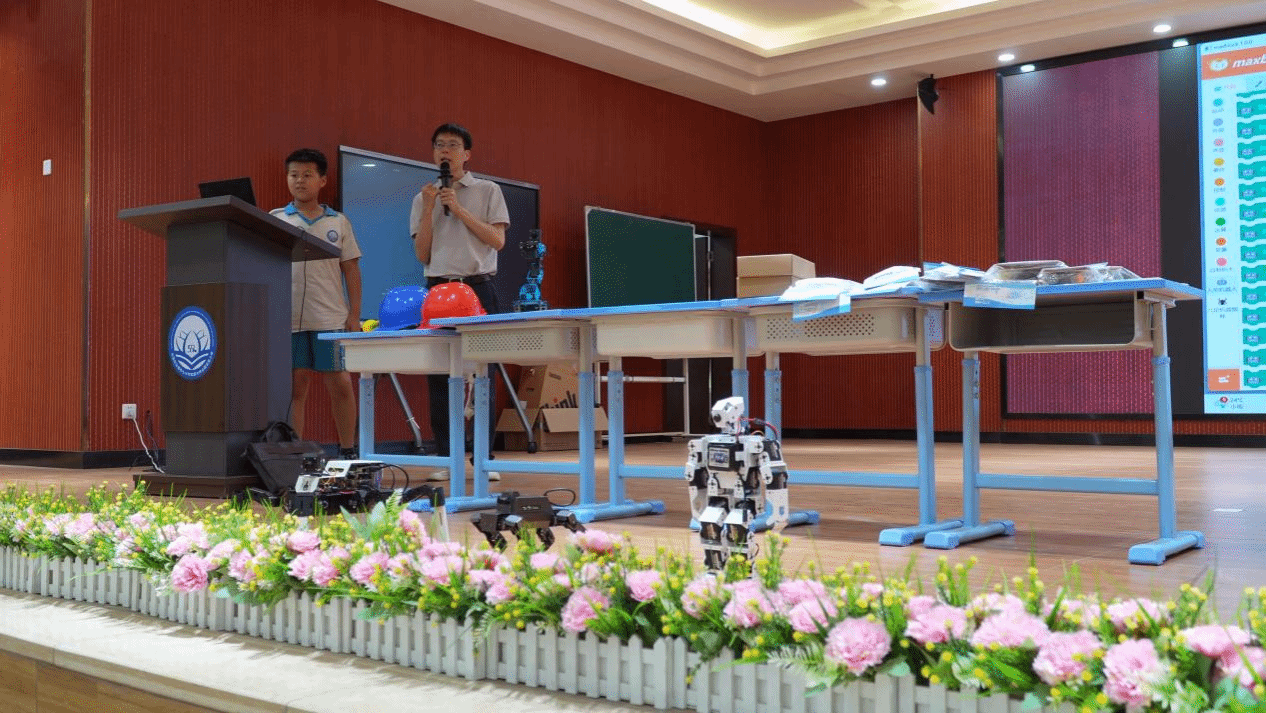 来自东莞理工学院计算机科学与技术学院的魏小锐老师邀请了现场的同学一起体验人脸识别、手势识别、姿势识别以及机械手自动跟随人脸等,这些人工智能技术已经广泛应用到我们的生活当中,进一步加深了同学们对AI的理解。最后魏小锐老师邀请同学们上台,通过图形化编程让人形机器人、六足机器人以及机械狗“动”了起来,提升了同学们对人工智能的兴趣。