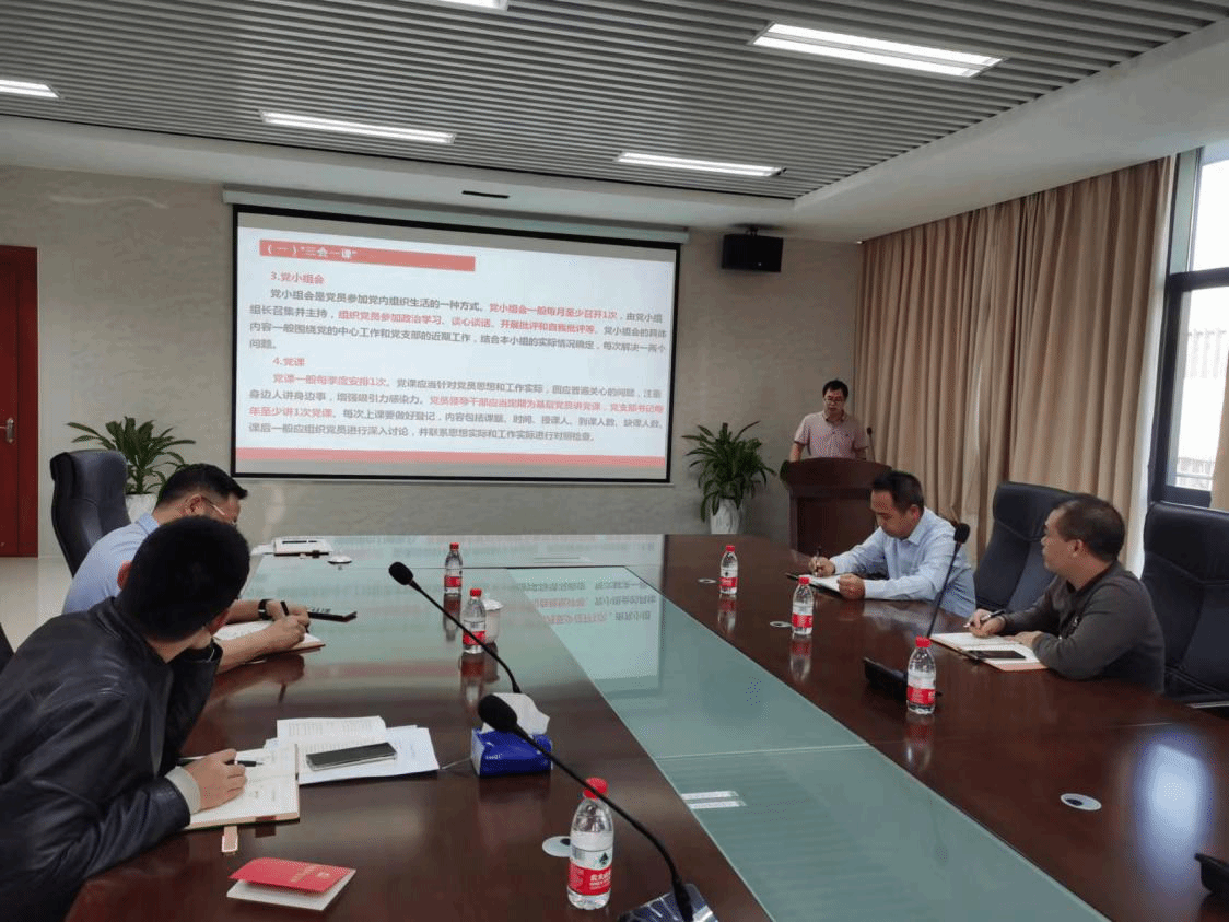 刘远飞以“党建工作实操”为题,和大家一起学习了《党支部规范化建设指导标准》基本组织、基本队伍、基本制度、基本功能、基本保障五方面,尤其对党支部职责分工、规范做好“三会一课”、组织生活会、主题党日活动等相关会议记录进行重点详细讲解。
